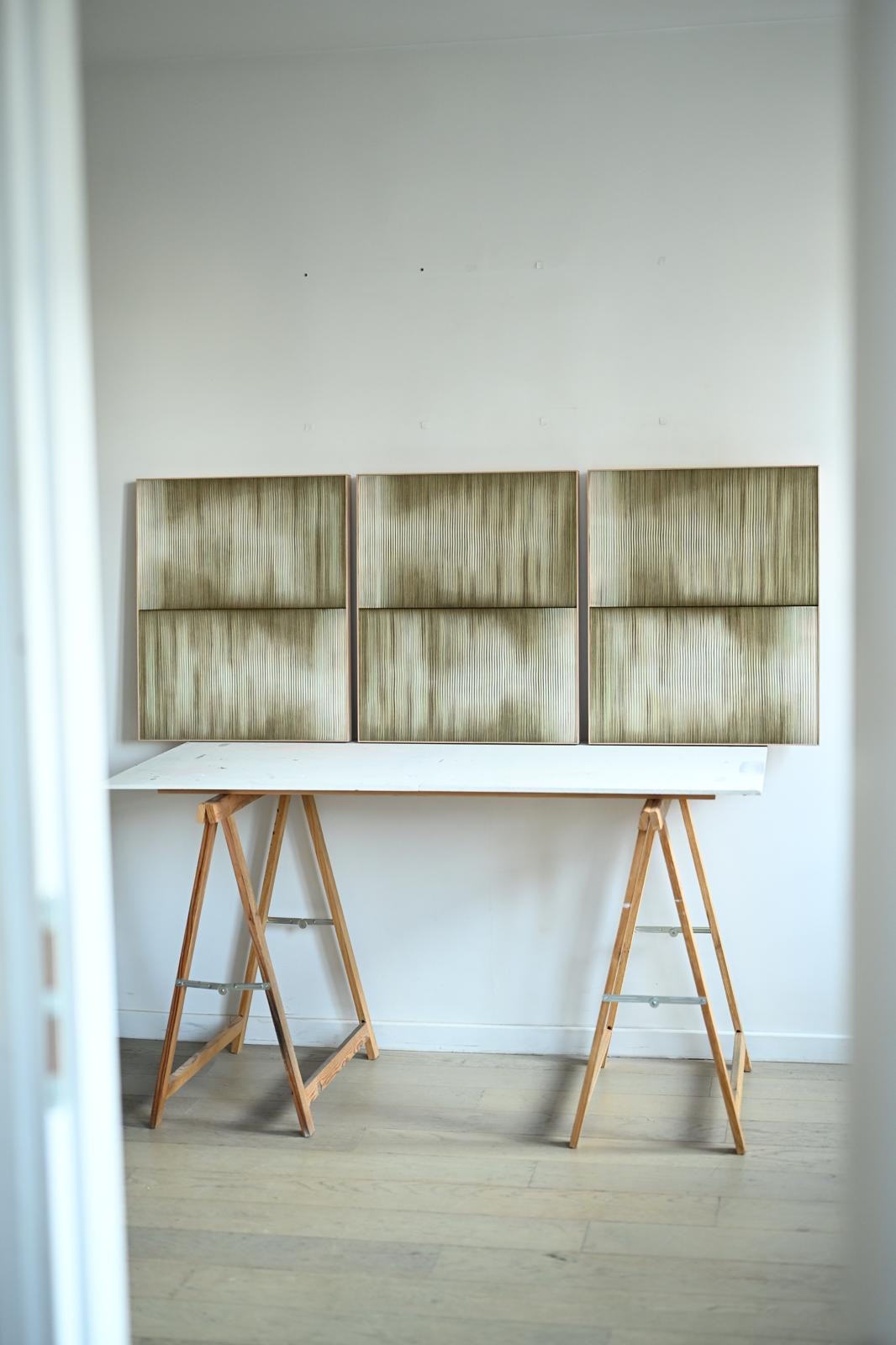 «The water, have been tinted beforehand by nine submerged pieces, it was not the subject yet; it was the medium for a previous production one year ago. Since then, it could have become static and died, but that is not the case; the movement persists.»